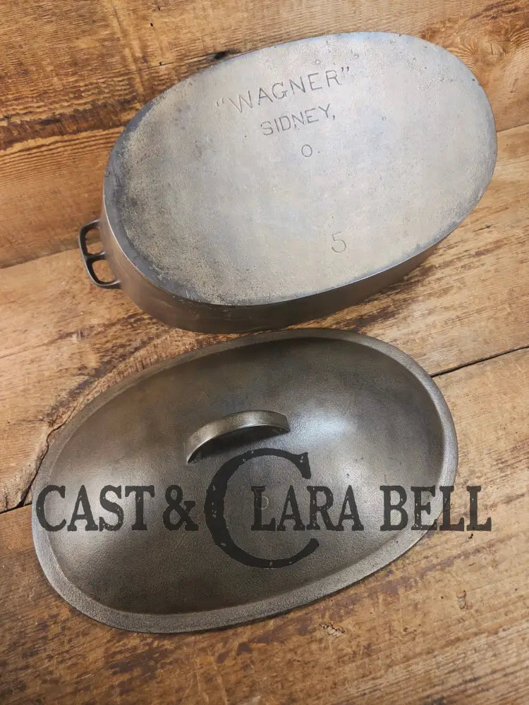 Very early Wagner #5 Nickle finish oval roaster. Beautiful patina on the outside and near perfect inside. Great bread baker!