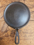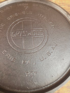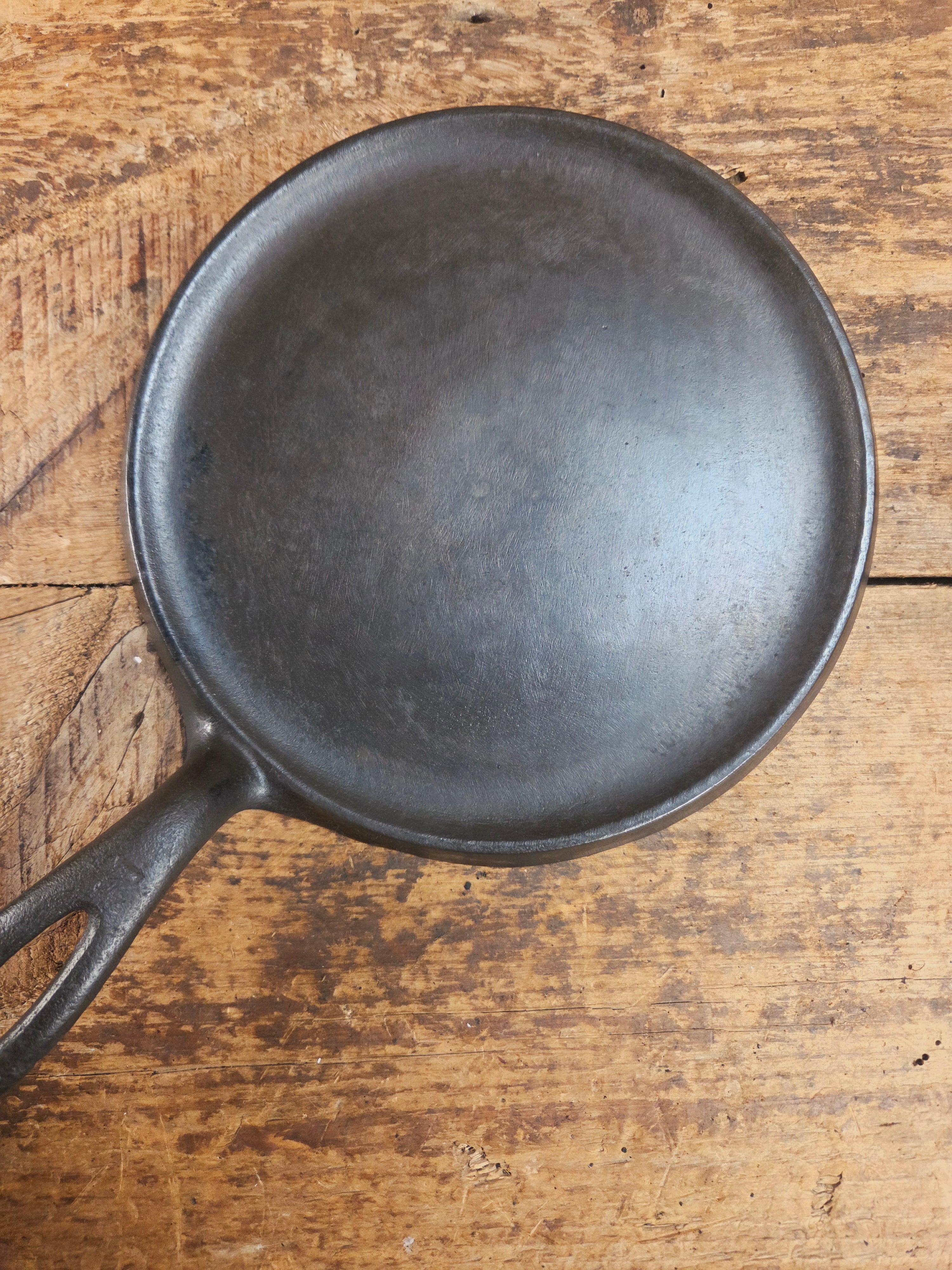 1910's very early Vintage Griswold Slant Logo Round #7 griddle with full Erie PA USA markings.Β  It has been fully restored and seasoned 3x with organic beef tallow. The surface is remarkably smooth and will darken with each repeat seasoning. The bottom has some minor sulfur pitting from being used on a wood stove which was par for the course back then.Β  It sits flat and has full contact with glass surfaces. It's a fantastic piece for daily use and will display beautifully in your gourmet kitchen. Smaller and more difficult to find than the 8, 9 and 10 griddles, this one is adorable and fun sized!!Β