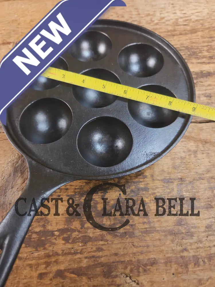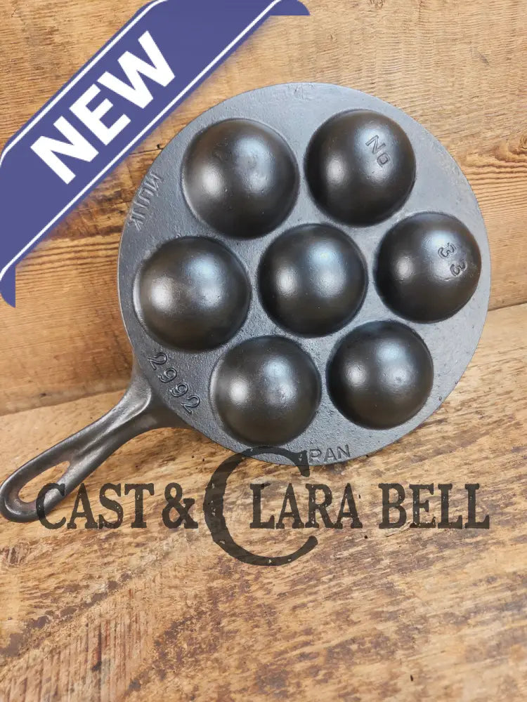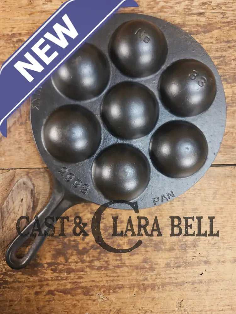 This Danish style Aebleskiver, called a 'Munk' pan, made by Griswold, is one of a few variations made by the famous foundry. There are multiple versions of Aebleskivers, and the most prized are the fully marked ones like this. The markings are both incised and raised and it is in great condition. It sits flat and has no damage visible. It has been restored and seasoned three times with our blend, making it ready to use once you receive it. A one of a kind!Β