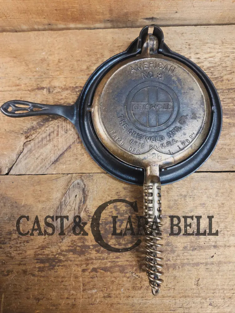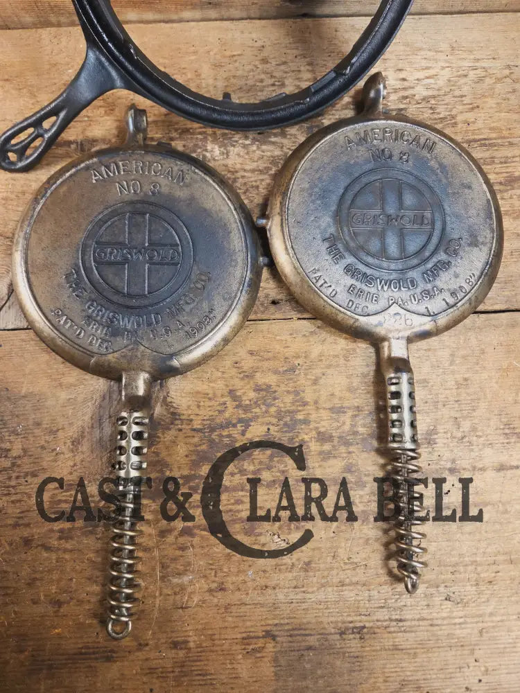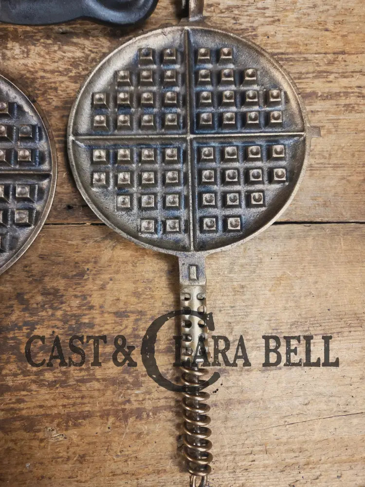 For the eclectic enthusiast!! 1920's Griswold #8 Waffle Iron 885/886 with Matching Low Base 975. Plated paddles, Black Iron Base? Oddly cool.
