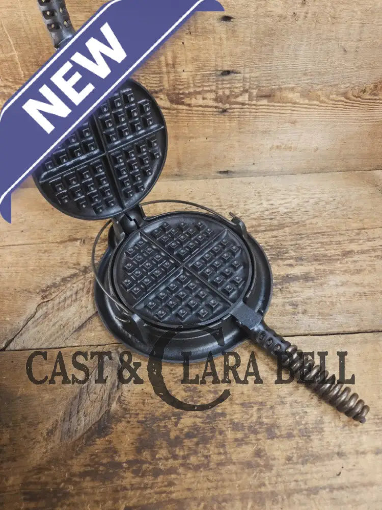 Our customers know that when we say that an item is unique and amazing, that we‘re spot on in the description. We LOVE this one and don‘t want to see it go! This waffle iron is easily a top ten all time item for us. It‘s the cutest waffle iron! It‘s a #7 so it‘s smaller than the 8 and 9, but makes PERFECT personal sized waffles. The low base, fully marked is a rare find as well, so its perfect for any cook top surface. There are small amounts of casting flaws on the outer ring of the base, but it‘s charm is overwhelming. Other than that there is no damage or issues with the iron. It was been restored with organic beef tallow
