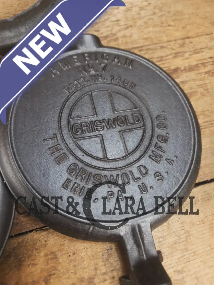 RARE Griswold #7 Waffle Iron with Short Base and Alaskan Handles, Patt. 146 N, The Griswold Mfg. Co., Erie PA, USA