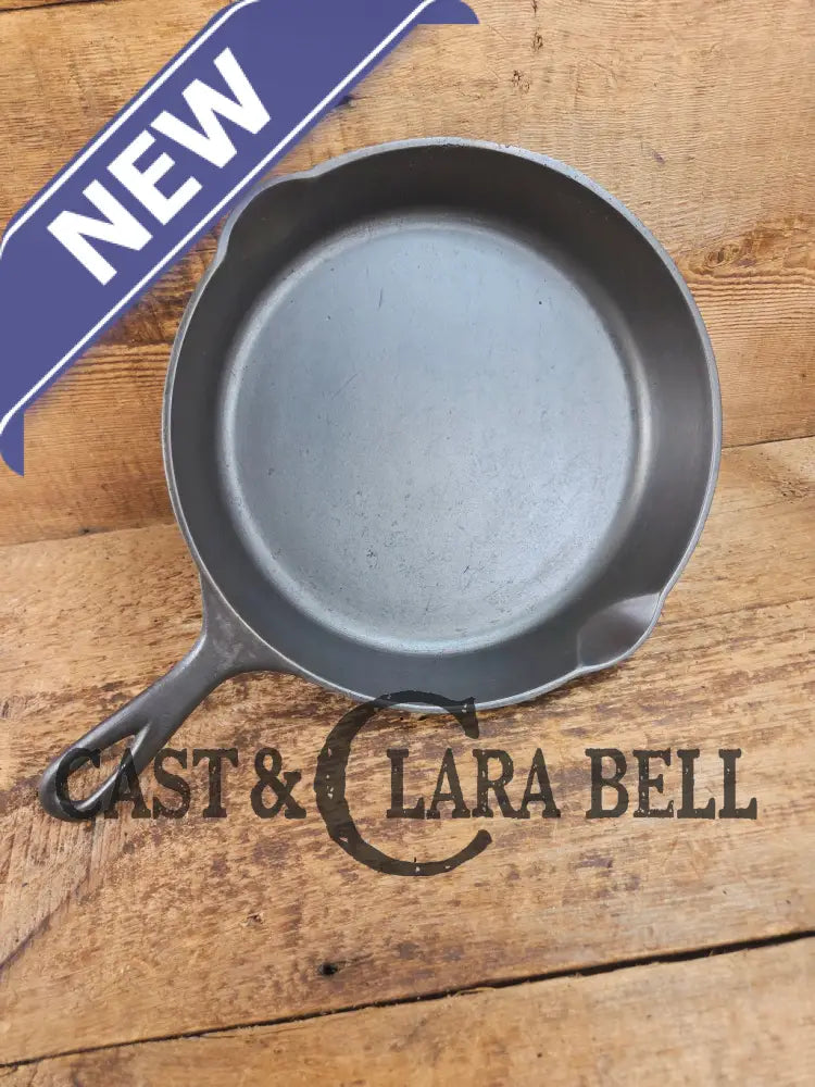 This skillet was acquired in a collection from a long time Griswold collector in Maryland, and we believe was a regular user of his. So we stripped it down fully with electrolysis and rebuilt it with three rounds of seasoning. Sits flat and doesnt spin. Enjoy!!Β