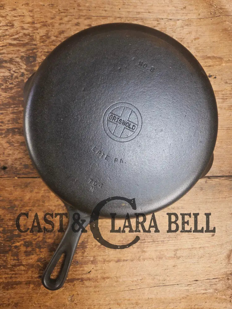 1940's Griswold No. 8 Cast Iron Skillet with Small Block Logo and Smooth Bottom, 704 N