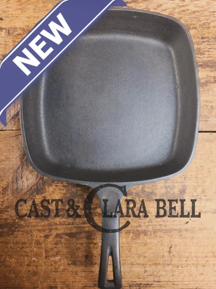 For the person who is looking for a unique cast iron piece, consider this Wagner Ware square skillet. Its been stripped and fully restored with organic beef tallow and is ready to use! Perfect for bacon and eggs, chops, steaks or seafood. Sits flat and does not spin. It comes with a hard to find square skillet lid with Wagner Ware markings. These lids are not the easiest so source its a wonderful combo to own. There is a small chip in the bottom of the lid. See pics for details.