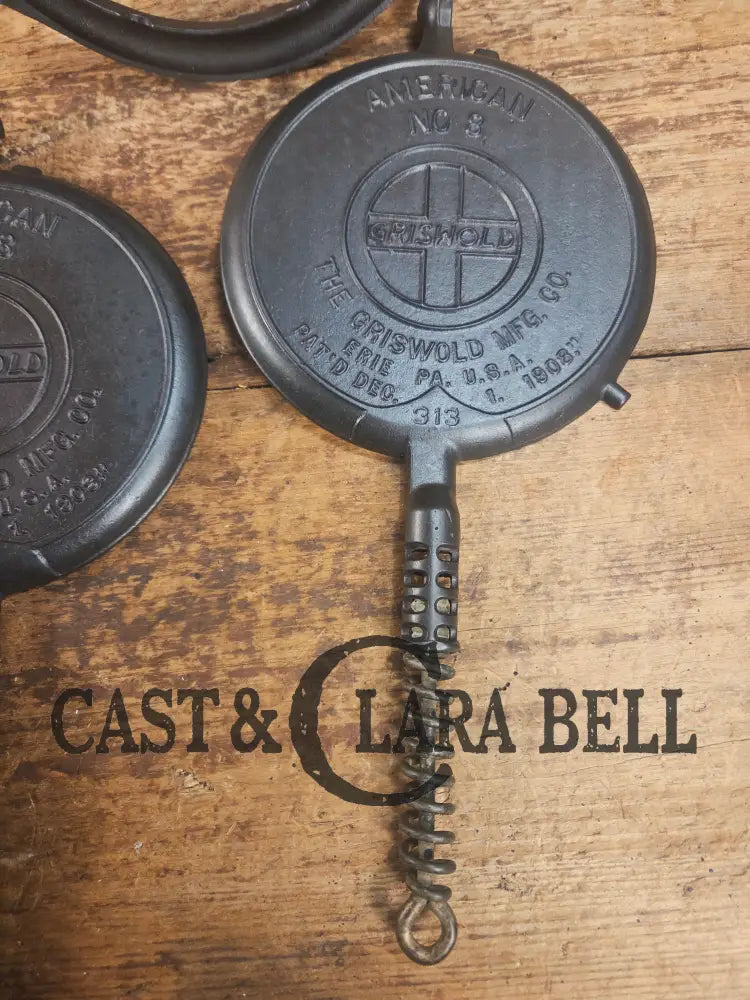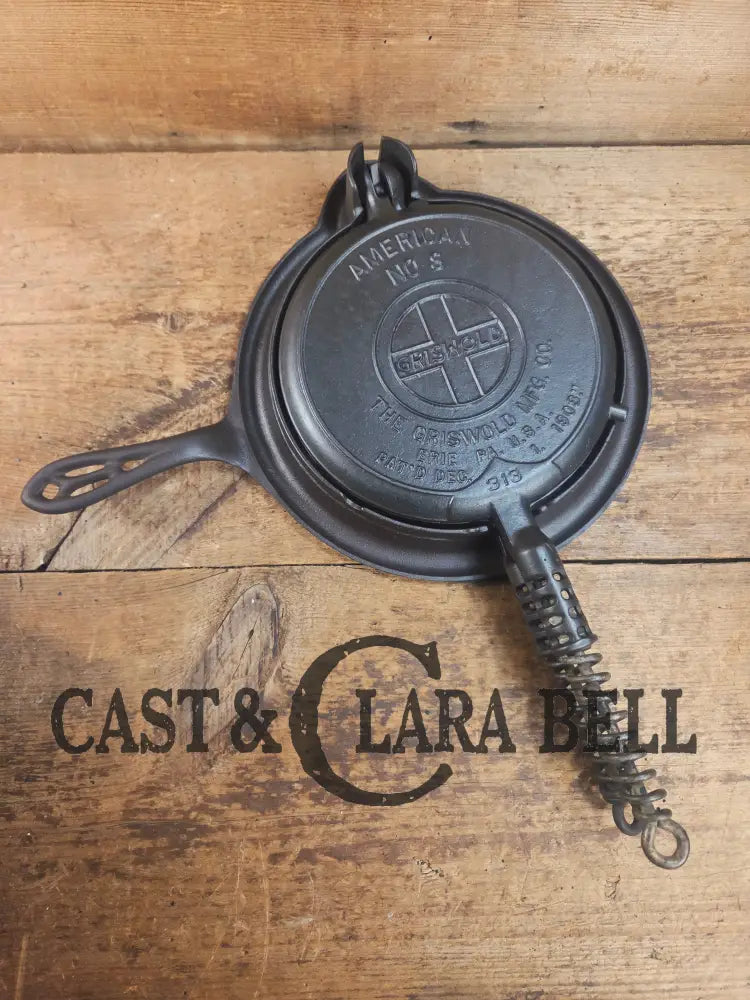 GORGEOUS! Awesome 1920's Slant Log Griswold #8 Waffle Iron 314/313 with Fully marked Base 327. Ready to make crispy waffles!