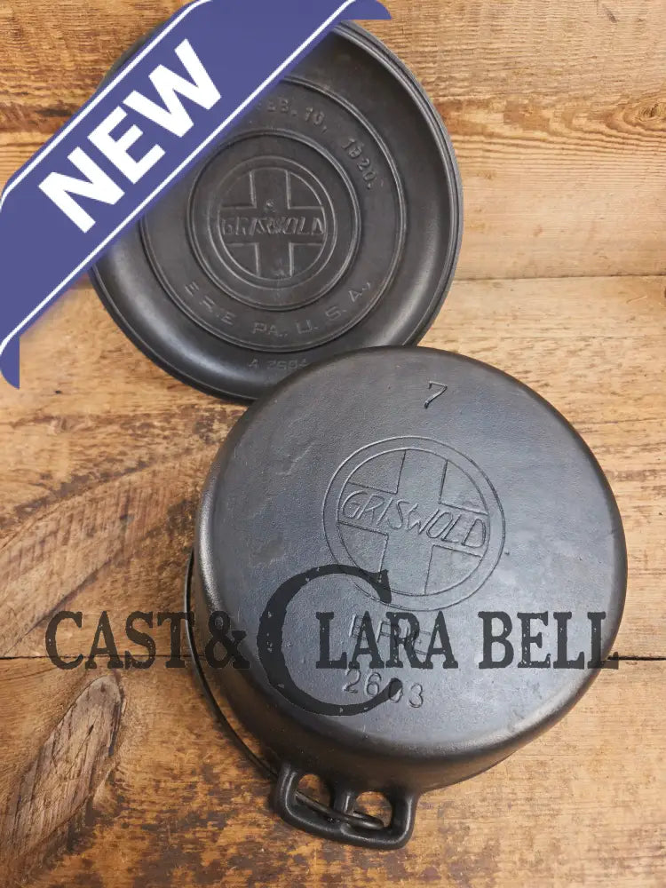 GORGEOUS. Early 1910's Griswold #7 fully marked Tite-Top Dutch Oven 2603, Slant Logo ERIE 2604