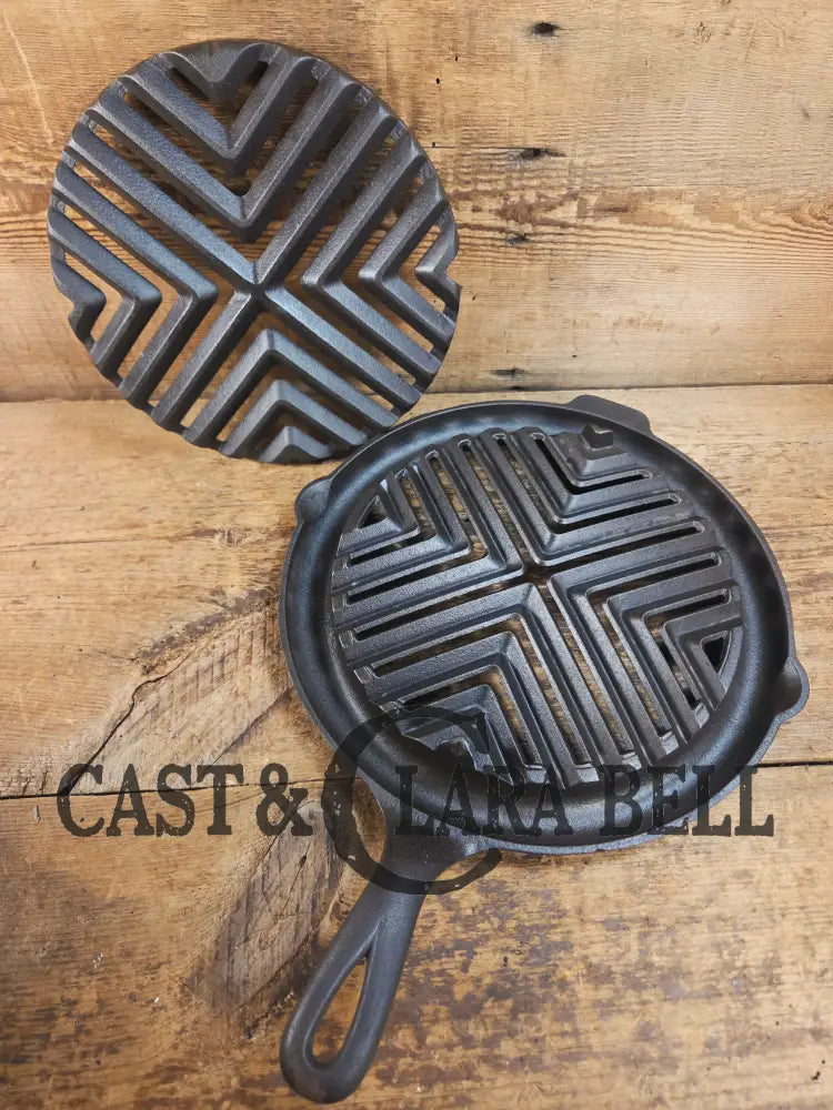 Cast & Clara Bell sells fully restored cast iron cookware, bakeware, dutch ovens, griddles, sad irons, bailed griddles, gem pans, muffin pans, kettles, skillets, trivets, lids, and much more! Brands like Griswold, Wagner, Sidney, WagnerWare, Wapak, Lodge, Favorite Piqua, Marietta, Orr and Painter, Erie, Griswoldโs Erie, Birmingham Stove & Range, Vollrath, Chicago Hardware Foundry, CHF, Martin Stove & Range along with gate-marked unknown and specialty pieces are organized into categories. We sell collectorโs pieces, every day users, and everything in between!