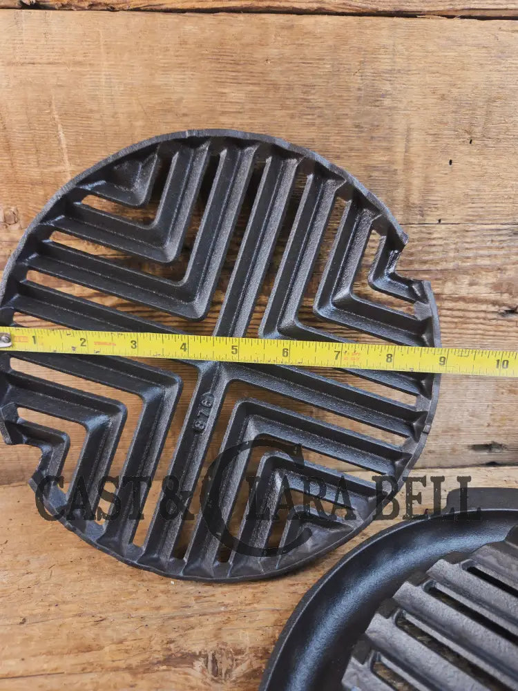 So this is a first for us!ย This dandy of a broiler (875/876 is a tough one to find for a reason. Not many are left around from back when Griswold made these, AND it has BOTH pieces in tact and in beautiful shape!ย Usually only found in the collections of seasoned aficionados.ย Griswold didn't make the traditional "angus broilers" that you see from Wagner/Wagwold.ย Its a perfect pan for display, when not being used over a flame for searing meats and veggies. The grooves will not only make a beautiful ribbing of sear marks, but it will drip away and collect along the bottom.ย Don't sleep on this one!ย