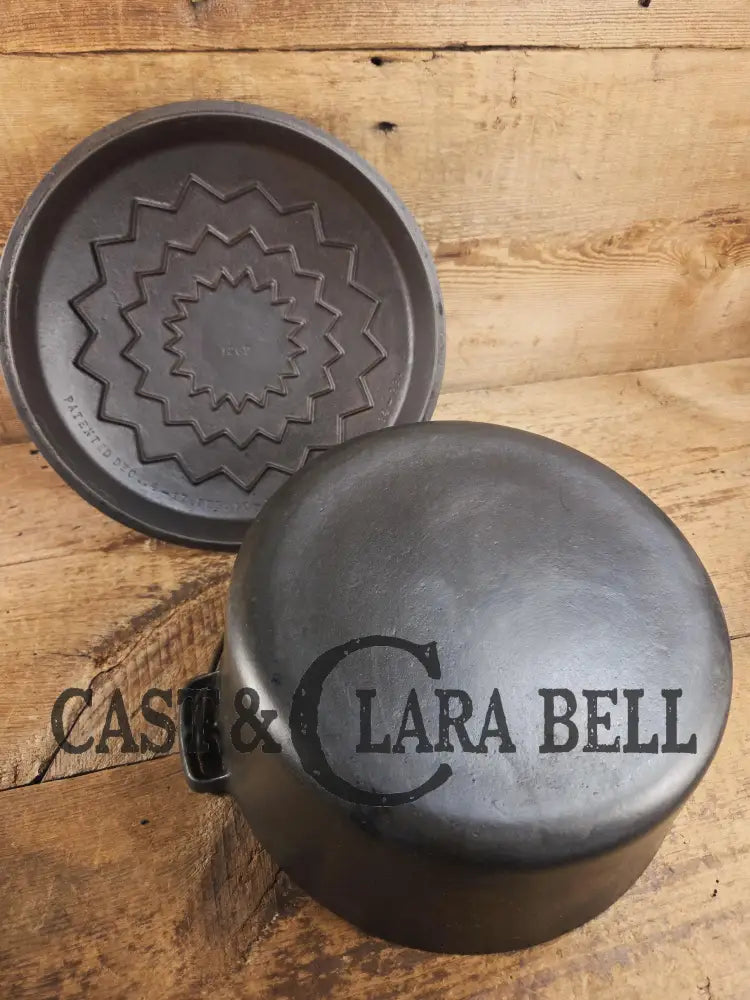 So unique! 1930's Large fully marked Wagner Ware No. 9 Dutch Oven with saw tooth style Lid 1269 and Ghostmarked Logo!? Very odd!
