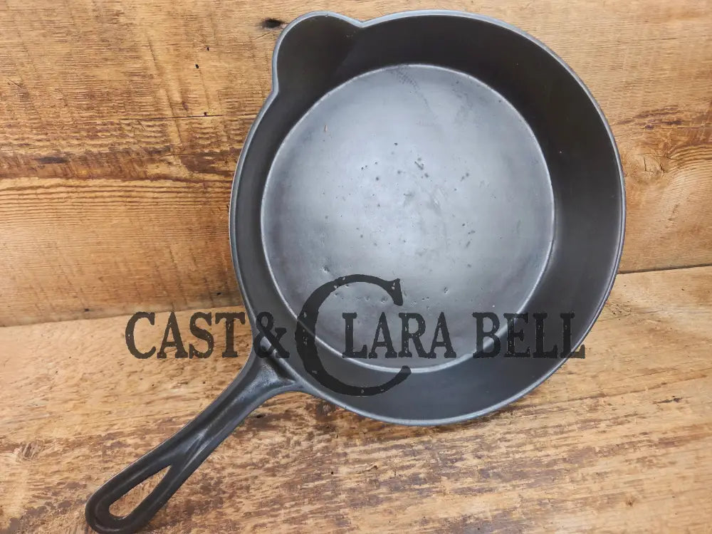 If you're searching for some unique cast iron to add to your collection, consider adding this semi-fancy handle, gate marked #8 skillet. The single left pour spout is reminiscent of patterns in the 1880's. It sits flat so its perfect for any cook surface.