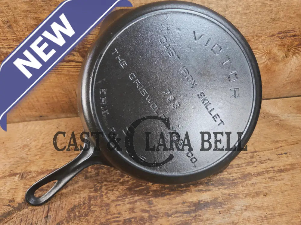 We LOVE the Griswold line of Victor skillets for many reasons. They handle well, are light as can be for a cast iron pan, they have the Griswold touch for finish and design... AND this one is in fantastic shape. They were made as an off-brand skillet or "price fighter" for back then, but for what it's worth, these rival the block and slant logo skillets with ease. We have a few of the versions available, but this is fully marked. If you're a collector and haven't tried a Victor, now is the time and this is the one!