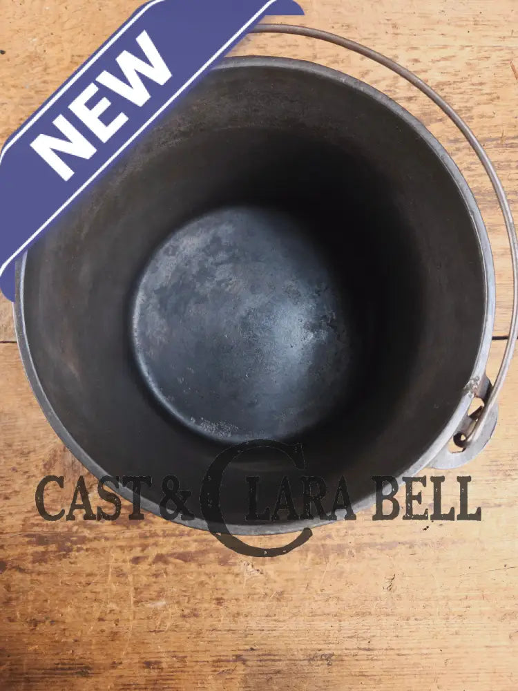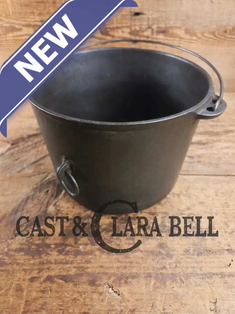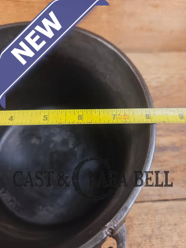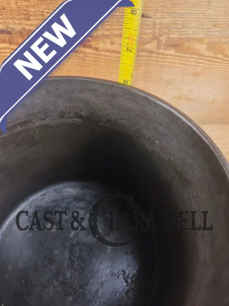Very cool piece that we only see every now and then. The flat bottom kettles were made in sizes 6 through 12 and they are amazing to use for soups and stews. The 7 through 10 are more common but the 6, 11 and 12 are very hard to find. Very unique alternative to the traditional Dutch oven. It has been fully restored with some wear and tear on the bottom. It would cook up a mean pot of chili by the campfire, or would look amazing in your displayed pieces in your gourmet kitchen! You don‘t see these that often!