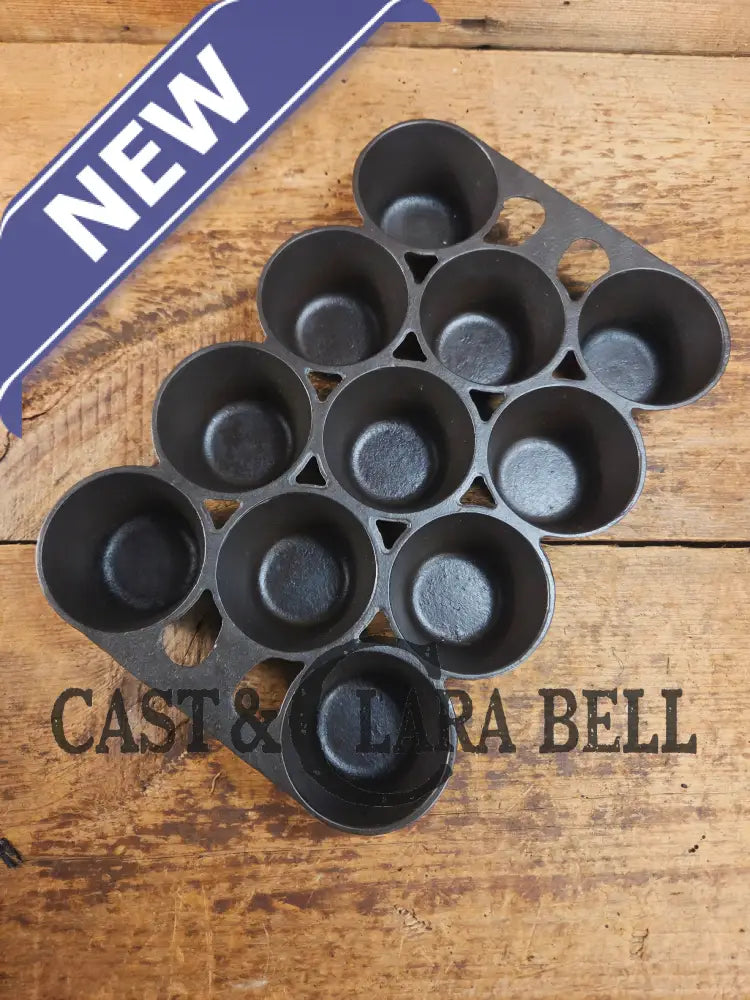 This early 1900‘s era No. 10, 11 Cup Muffin Pop-Over Pan has been stripped naturally and cleaned through electrolysis before being seasoned three times with tallow. It open cup design makes it ideal for baking due to better air circulation while in the oven. There were over a dozen variations of the #10 Popover and this is variation 10, Rarity 2. Perfect for cornbread, cupcakes and wellingtons, Griswold made a superior pan for you to enjoy!