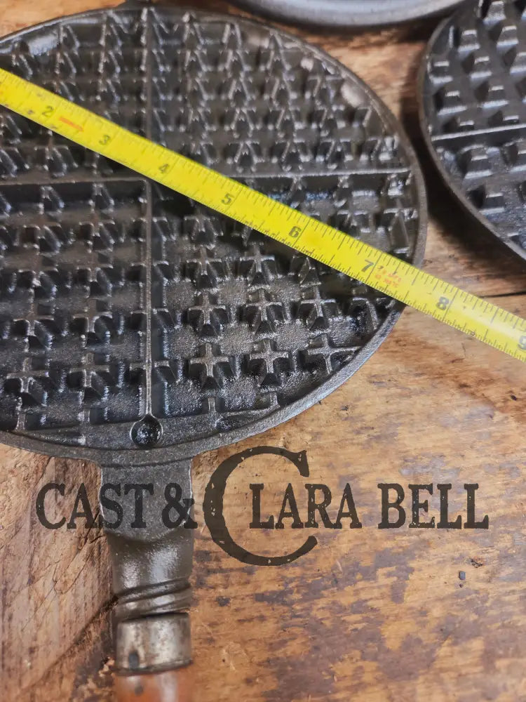 This one is beautiful.Β Stover Waffle Irons were manufactured in the early 19th Century, and were only in existence for a limited time. Like many foundries in American history that did not make it through past the mid 1900's (for many reasons), the Stover Foundry was only producing these amazing pieces of history for a limited time. The base is perfect for any cook top or surface, and is heated in advance on both sides of the paddles before adding batter.Β The handles are orginal and are in very good shape!Β Β