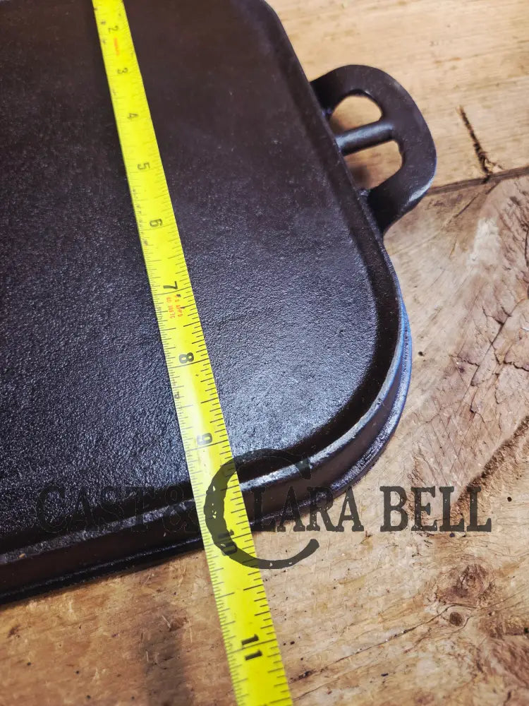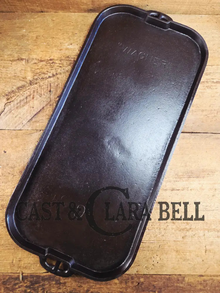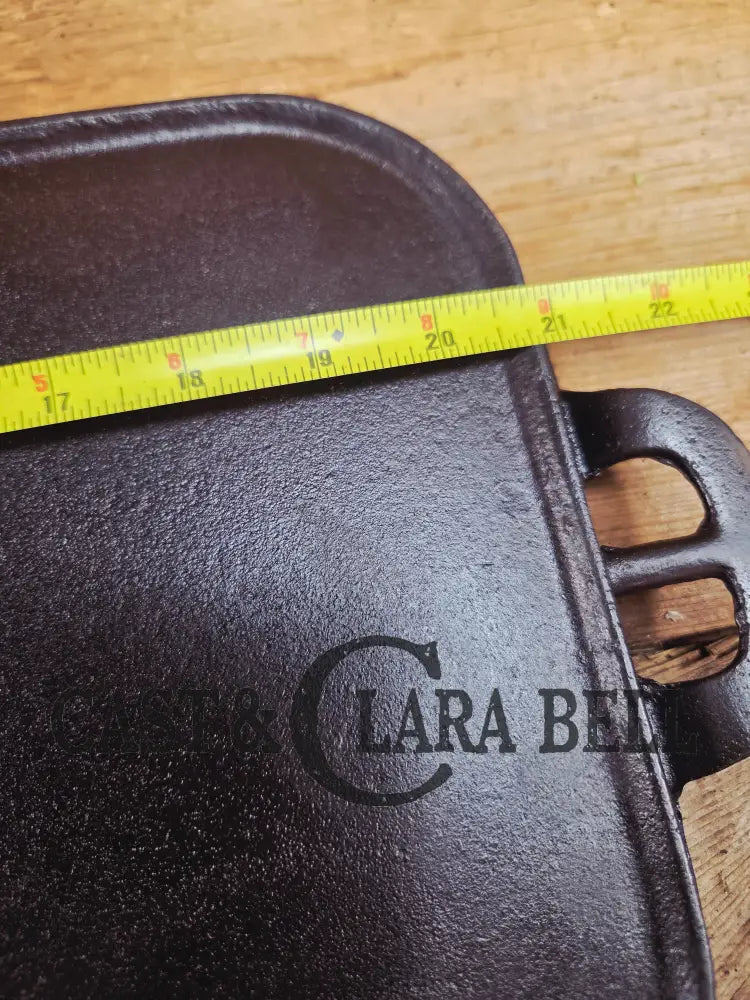 This Wagner straight griddle (approx 21x10) is gorgeous.  Being made in the late 1800's its from the earliest series' that Wagner made. It sits flat and is great for all surfaces.  It's just a beautiful piece that we don't see all that often.  Perfect for sitting over two burners on the stove, the grill or even an open firepit.  Very versatile for all kids of uses.  We LOVE ours and use it every week.