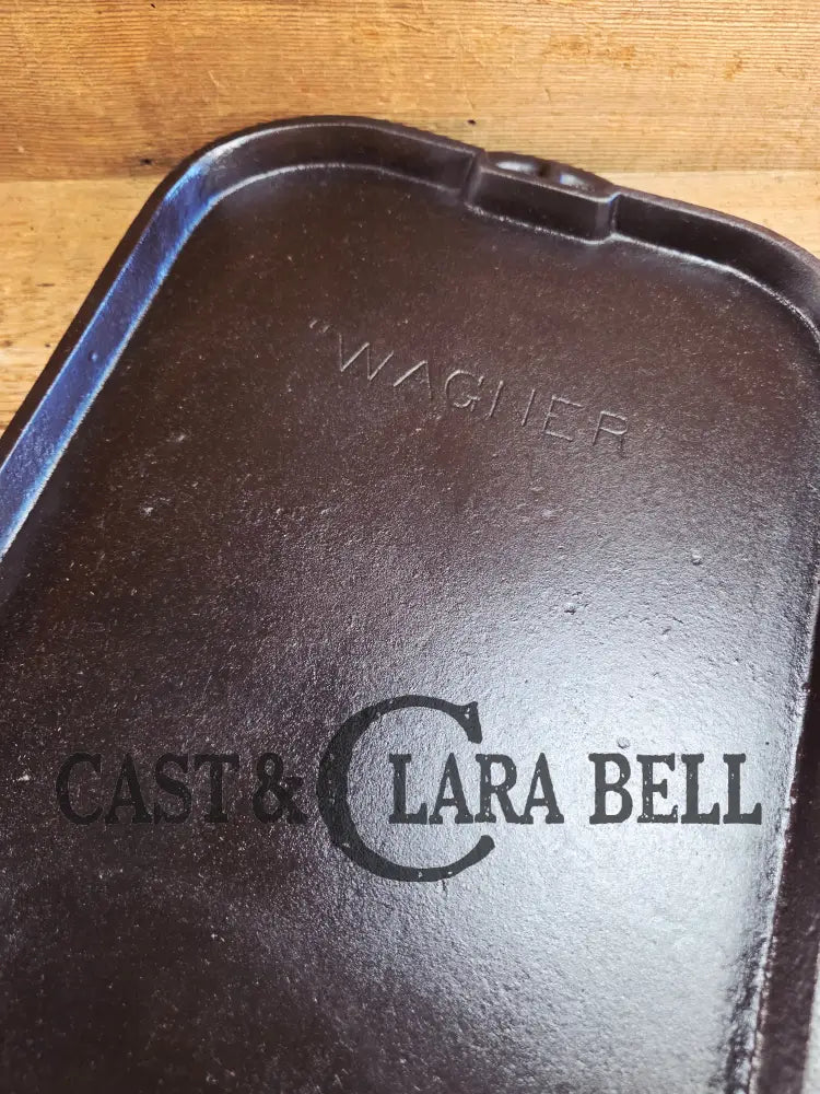 • Cast And Clara Bell sells fully restored cast iron cookware, bakeware, dutch oven, griddles, sad irons, bailed griddles, gem pans, muffin pans, kettles, skillets, trivets, lids and much more! Brands like Griswold, Wagner, Sidney, WagnerWare, Wapak, Lodge, Favorite Piqua, Marietta, Orr and Painter, Erie, Griswolds Erie, Gate marked unknown, Birmingham Stove and Range, Vollrath, Chicago Hardware Foundry, CHF, Martin Stove and Range and Specialty pieces are organized into categories. We sell Collector‘s pieces, every day users and everything in between!
