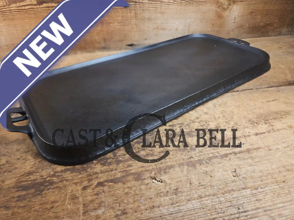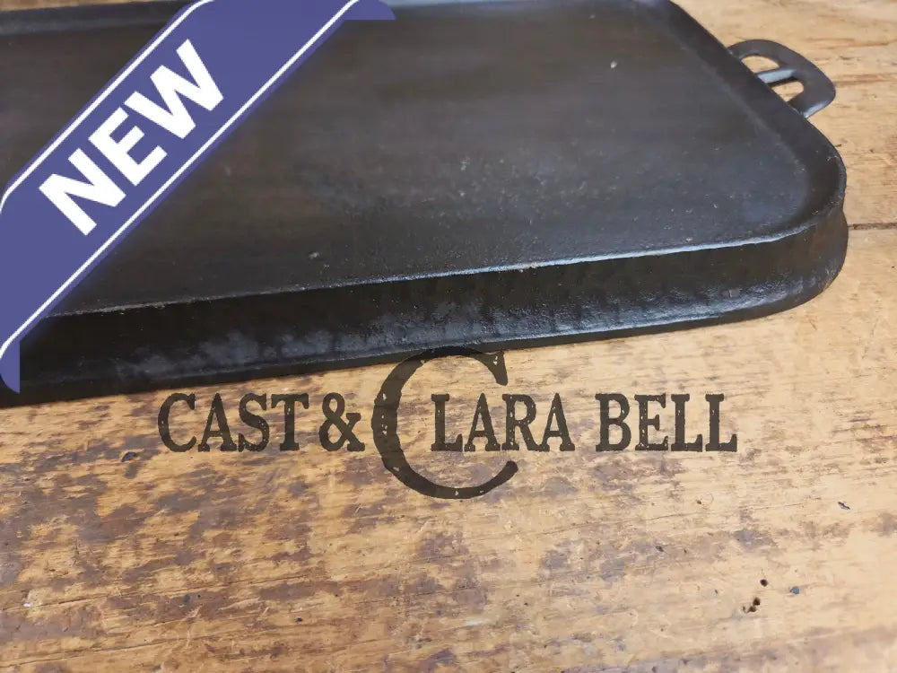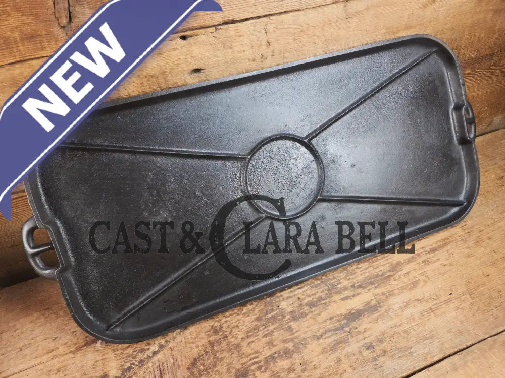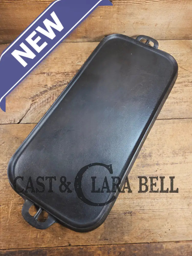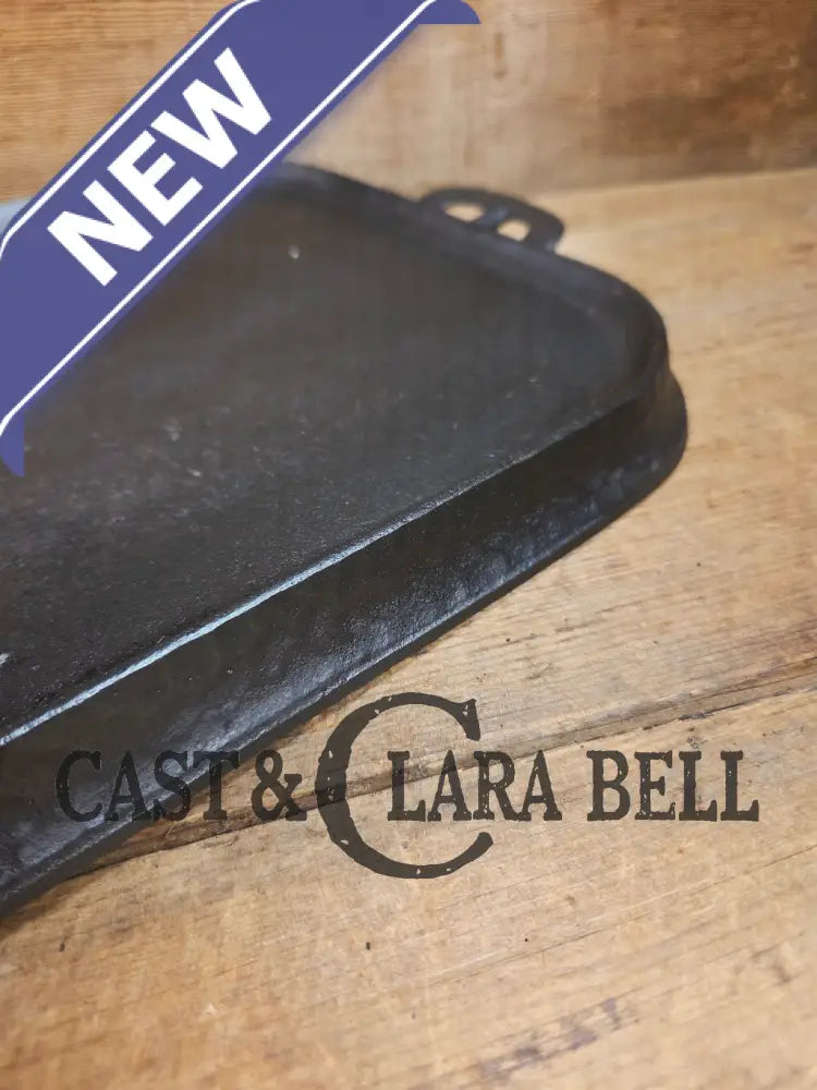 This Wagner hammered long griddle from the 30's, came from a collection of a long time southern cast iron collector who had clearly used it on a wood stove. It has some sulfur pitting only on the bottom from being over the stove eye.Β Griswold, Lodge, CHF and a few others made some hammered pieces, but the Wagner griddles are tough ones to find.Β They weren't made long so there is a scarcity to finding one.Β Being over 100 years old, we couldn't believe how well this griddle cleaned up. It has been stripped fully down before being seasoned three times. It sits flat and performs beautifully on the stove top. The Wagner foundry from Sidney Ohio made these griddles just after the turn of the century, and it's story can continue now with you!Β