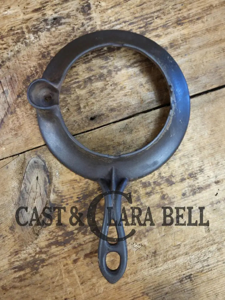 Wagner made only a few of these style irons, and they are very hard to find.ย If you are an iron aficionado, a collector of unique pieces, or just looking for a one of a kind, this is the one!ย Its sizing looks similar to a #6 waffle iron so its small.ย It was originally cast and coated with nickel so there are remnants of that coating, giving a very unique patina.ย This is a flip style iron so you pour in the batter, cook it on one side, flip it over with a fork or utensil and then cook the other. Safe for the stove top AND the fire pit. A fantastic decorative piece!
