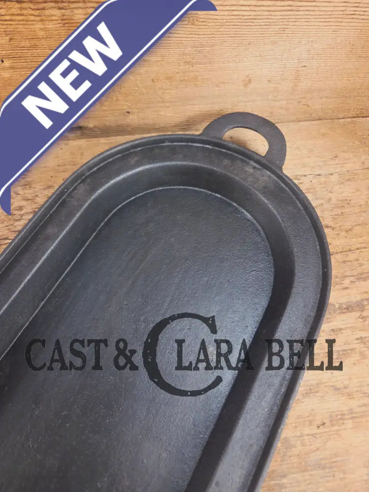 This piece is REALLY cool!Β This 18th Century Gate Marked long griddle has been restored from WELL over a century of use, and is now back to life in fantastic working condition for you or as a gift for the home chef. The handles sit off the surface so they are easier to handle when over two burners. The bottom surface is in wonderful condition and sits flat enough to be used on any cooking surface. The depth of the griddle is about 1 inch so it is not suited for deep frying. Its often referred to as a fish fry, or sad iron heater, as is indicative of its function, but previous customers have told us they use them for conversation starting center pieces as well! Perfect for cooking bacon, pancakes, or other proteins. It has been stripped using a lye bath and electrolysis, and has been seasoned 3 times with our beef tallow so its Ready to use!