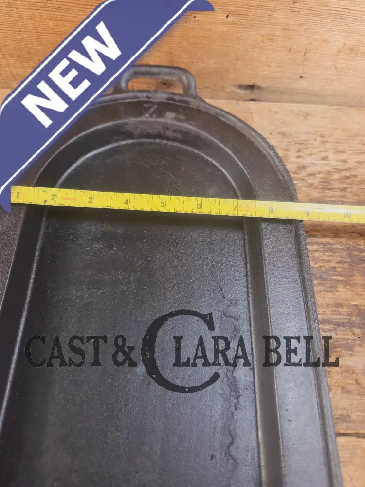 This piece is REALLY cool!Β This 18th Century Gate Marked long griddle has been restored from WELL over a century of use, and is now back to life in fantastic working condition for you or as a gift for the home chef.Β It's very difficult to determine where these were made but it has both the raised 7 and a raised P on the top making us wonder if these were Lodge made.Β There's such little info on the long pans made by Lodge early on so its purely speculative.Β But a beautiful piece to have.Β