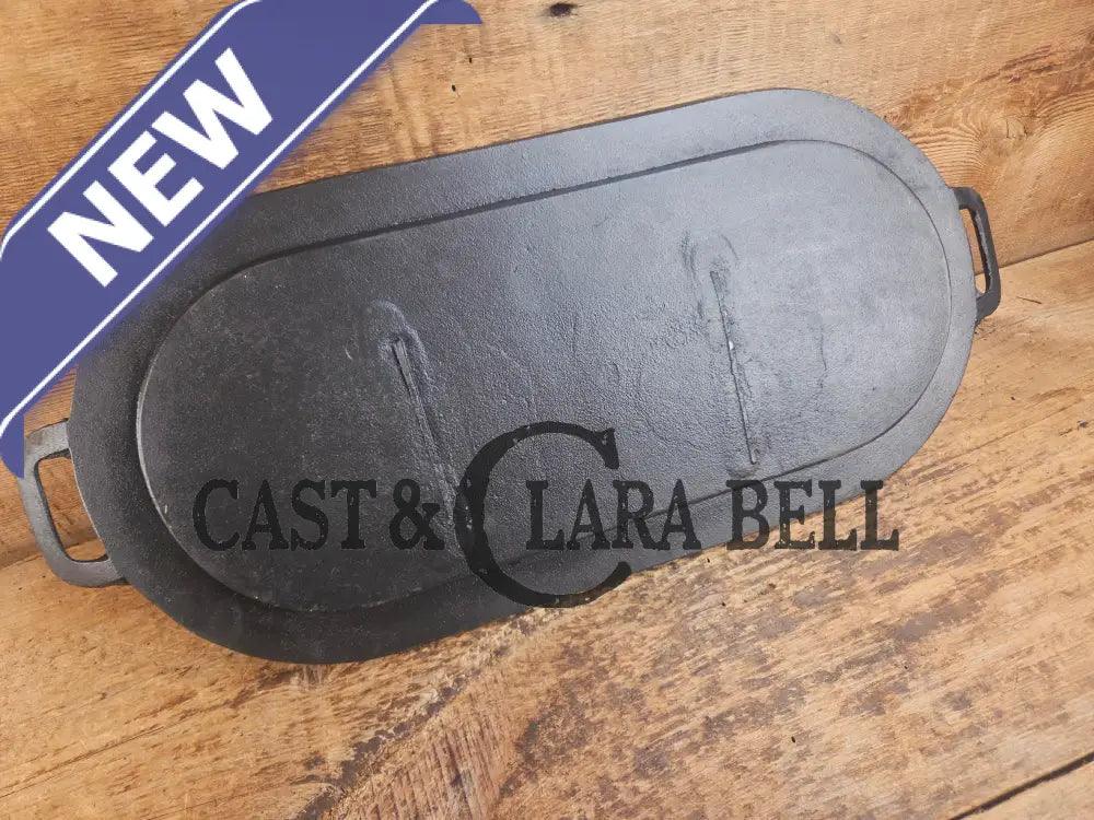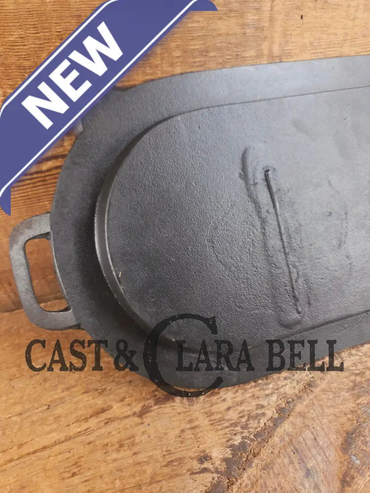 The handles sit off the surface so they are easier to handle when over two burners. The bottom surface is in wonderful condition and sits flat enough to be used on any cooking surface. The depth of the griddle is about 1 inch so it is not suited for deep frying. Its often referred to as a fish fry, or sad iron heater, as is indicative of its function, but previous customers have told us they use them for conversation starting center pieces as well! Perfect for cooking bacon, pancakes, or other proteins. It has been stripped using a lye bath and electrolysis, and has been seasoned 3 times with our beef tallow so its Ready to use!