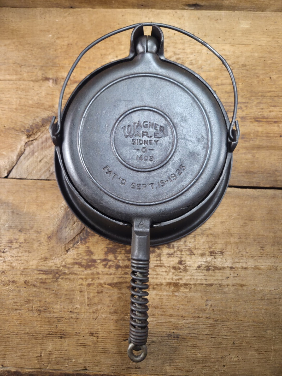 1920's Early Wagner Ware 1408 #8 Waffle Iron with Tall Base! A wonderful waffle iron for all cook tops. Great gift!!