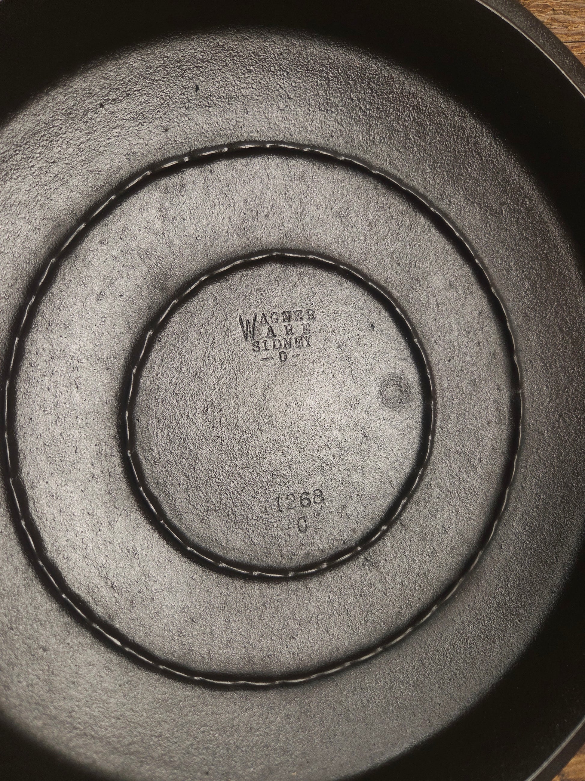 This beautiful 1268 Wagner #8 Dutch Oven has been restored and seasoned three times with our custom oil blend! Its a wonderful show piece and a fantastic tool for your savory soups and chiliβs. This dutch comes with the 1268 C ringed top, sawtooth matching lid as well. There is a lot of discussion around the "flatness" of holloware pieces, because so many of them were not made with concern for flatness back in the early 1900βs. So itβs a relatively new concern.Β BUT this is one of the rarer ones that sit flat on glass.Β It's not really a big deal either way because dutch ovens are typically used in the oven for roasting and baking, but in the event that you have it on glass, it will be in contact with 90% of the surface!Β Β