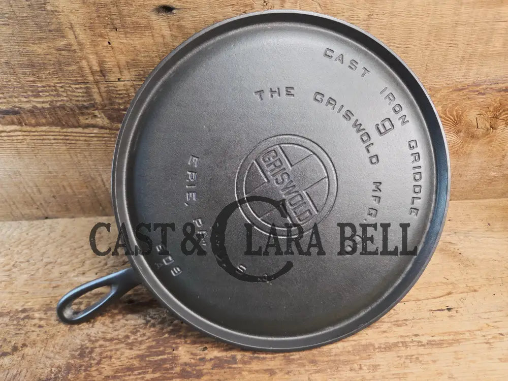 1930's Griswold #9 Cast Iron Griddle, Large Block logo, "Erie, PA USA,"609". Awesome for pancakes and grilled cheese!
