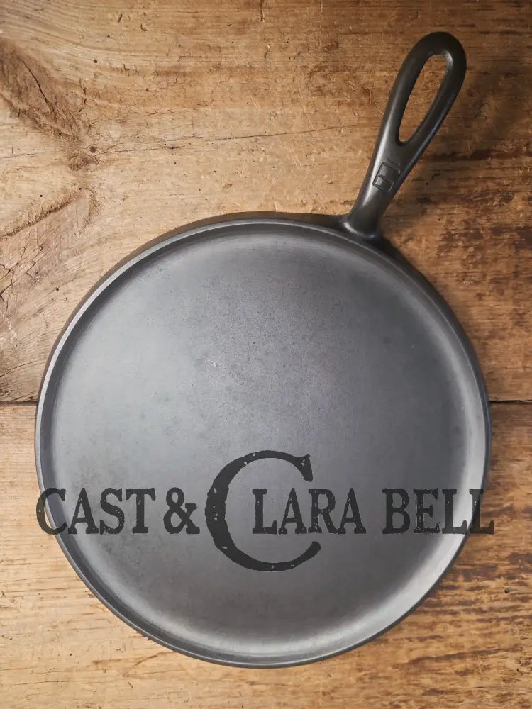 This is a lovely Griswold #8 Cast Iron Griddle, Large Block logo, "Erie, PA USA," 609 A. Restored and seasoned three times in beef tallow, its been restored from one hundred years of use and ready for the next hundred years. Perfect for an artisan grilled cheese, pancakes, or as a serving plate for a charcuterie board at your next party, this has flexibility because of its elegant finish, and traditional Griswold logo. Sits flat, no movement.Β