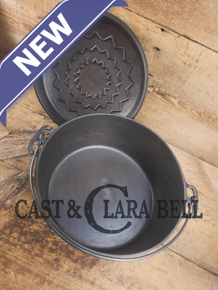 The raised lettering on this big #9 dutch oven makes it stand out as a center piece of your kitchen. If you love Wagner made products you‘ll know it‘s got the thickness to make beautiful breads and soups, but is light enough to not break your arms doing so! It has been fully restored and is ready to get to work when you get it home! It sits flat which is rare for these Dutch ovens. Just a gorgeous piece!