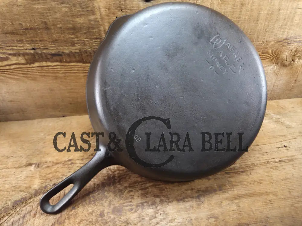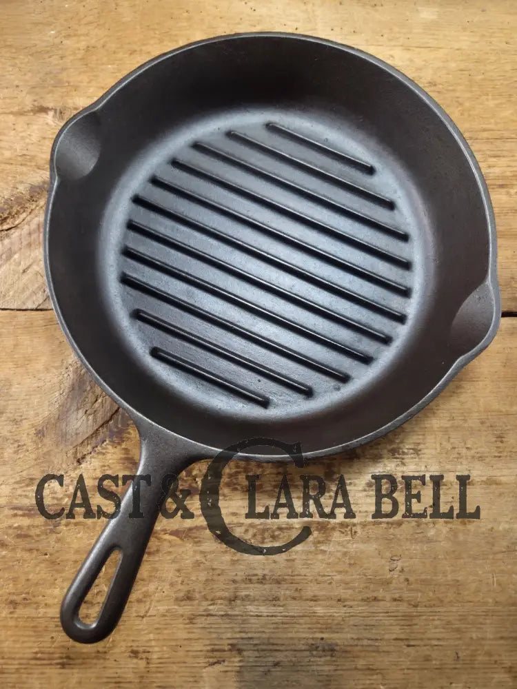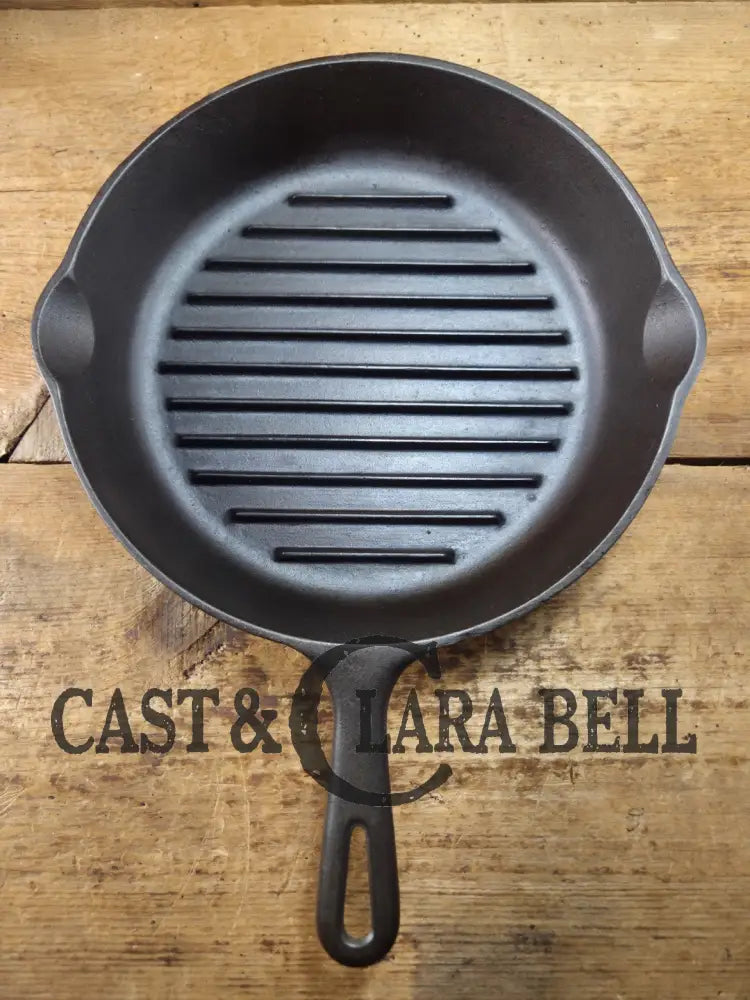 Wagner Ware fans, you‘ve got to have this Angus Broiler in your collection! It is fully marked with the Wagner stylized logo, has been beautifully restored and seasoned with our oil blend so it‘s ready to start grilling! This skillet is perfect for creating those mouth watering grill marks indoors, any time of year! Heat your pan to medium high, then sear a nice chop or veggies before putting in the oven to finish and you have a wonderful taste of summer any time of year. The pan is flat and does not spin, so its perfect for any cooktop including induction stoves.