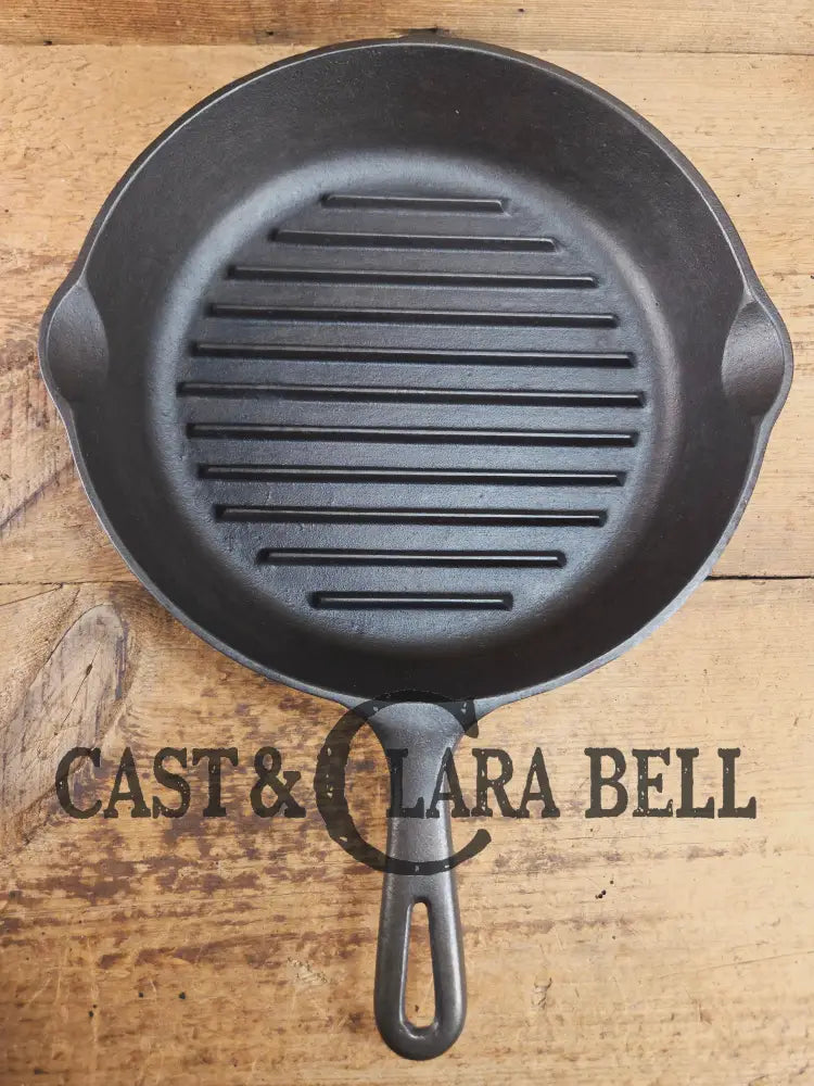 Wagner Ware fans, you‘ve got to have this Angus Broiler in your collection! It is fully marked with the Wagner stylized logo, has been beautifully restored and seasoned with our oil blend so it‘s ready to start grilling! This skillet is perfect for creating those mouth watering grill marks indoors, any time of year! Heat your pan to medium high, then sear a nice chop or veggies before putting in the oven to finish and you have a wonderful taste of summer any time of year. The pan is flat and does not spin, so its perfect for any cooktop including induction stoves.