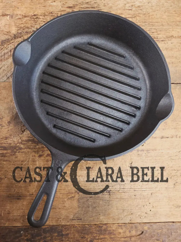 Wagner Ware fans, you‘ve got to have this Angus Broiler in your collection! It has been beautifully restored and seasoned with our oil blend so it‘s ready to start grilling! This skillet is perfect for creating those mouth watering grill marks indoors, any time of year! Heat your pan to medium high, then sear a nice chop or veggies before putting in the oven to finish and you have a wonderful taste of summer any time of year. The pan is flat and does not spin, so its perfect for any cooktop including induction stoves.