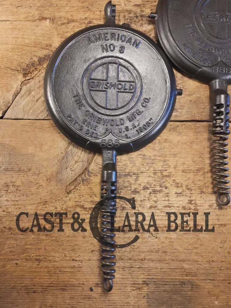 This vintage Griswold #8 Cast Waffle Iron (885/886) has been fully restored and seasoned and is ready to start making some amazing waffles! Made in and around the 1910-20‘s, it features the Griswold logo and a raised 8 on the base. After full electrolysis and restoration using three rounds of our oil seasoning, it‘s ready for the next 100 years of use. Shipping is of utmost importance so shipment comes insured and is carefully packed for the ride.