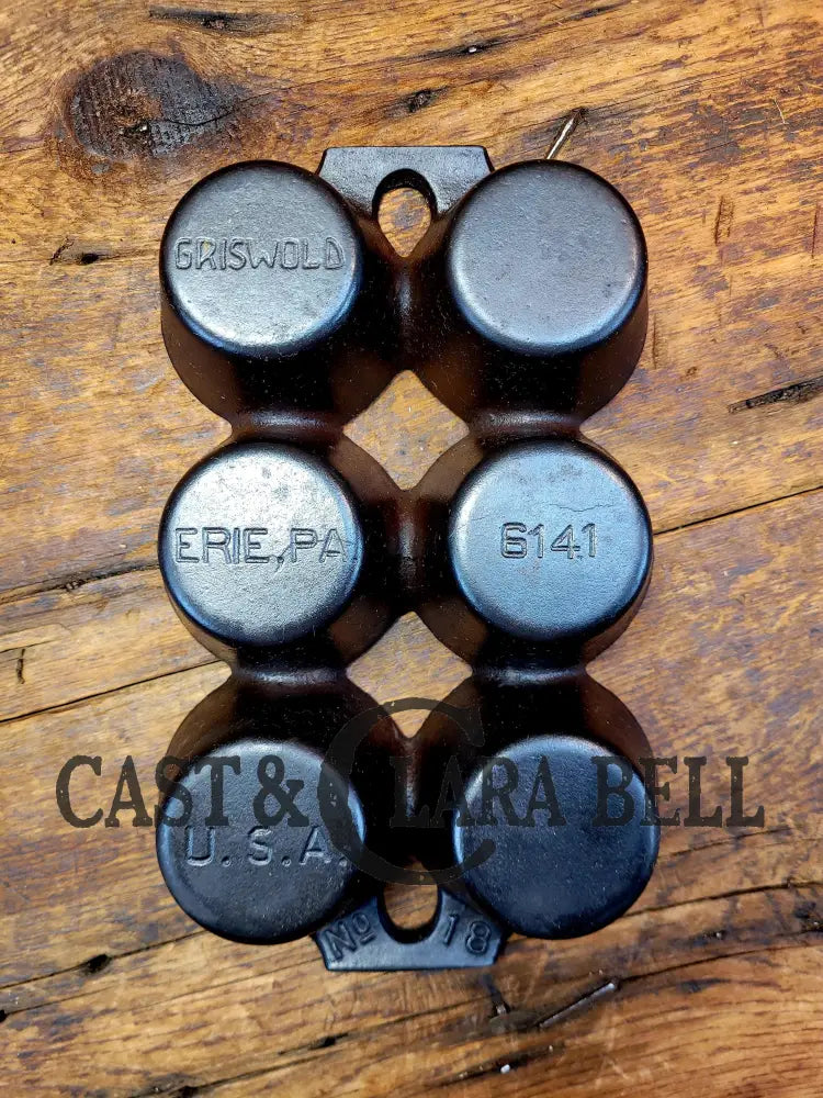 Beautiful 1920's Griswold 6 Cup Muffin/Popover Pan, 6141, Variation 5, Rarity 3. Restored, Seasoned and Ready to Use!