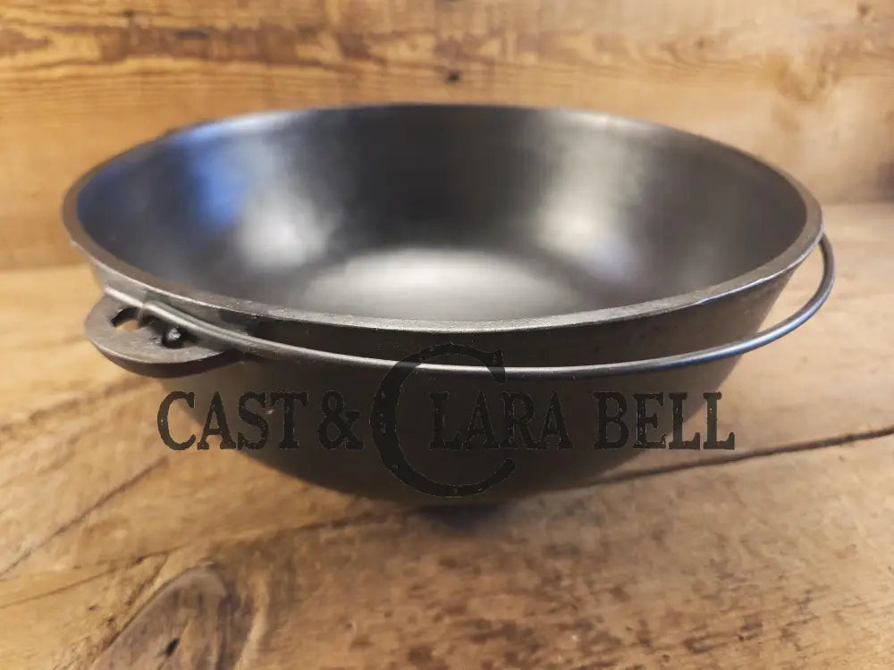You will LOVE this gorgeous Scotch Bowl (or as we call ours, a candy kettle bowl), made by Wagner over a century ago. It has been fully restored so you can use it for soups, braising, or for presentation in this magnificent stew pot. The Wagner Sidney arc straight logo is prominently displayed on the bottom and it sits flat on any surface. Use in the oven or on a cook top. Will work with induction heat elements. Gorgeous interior, and gorgeous all around!