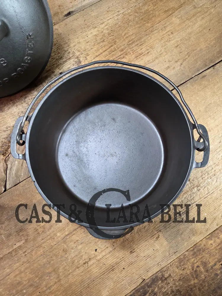 This is one of the coolest pots we‘ve had come through our shop. The raised lettering on this sleek #8 dutch oven makes it stand out as a center piece of your kitchen. If you love Wagner made products you‘ll know it‘s got the thickness to make beautiful breads and soups, but is light enough to not break your arms doing so! It has been fully restored and is ready to get to work when you get it home! It does not sit flat on a glass top and moves when prompted. that doesnt mean it cannot be used on glass, as it may. However it is best for gas and electric cook tops for maximum contact. And of course, its all the same in the oven!