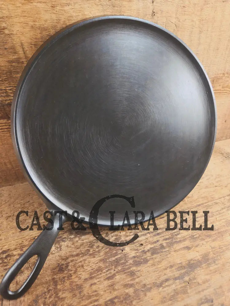 1920‘s Vintage Griswold Large Block Round #9 griddle has been fully restored and seasoned 3x. The surface is remarkably smooth and will darken with each repeat seasoning. It sits flat with a very slight wobble when pressed on outer edges. It‘s a fantastic piece for daily use and will display beautifully in your gourmet kitchen.