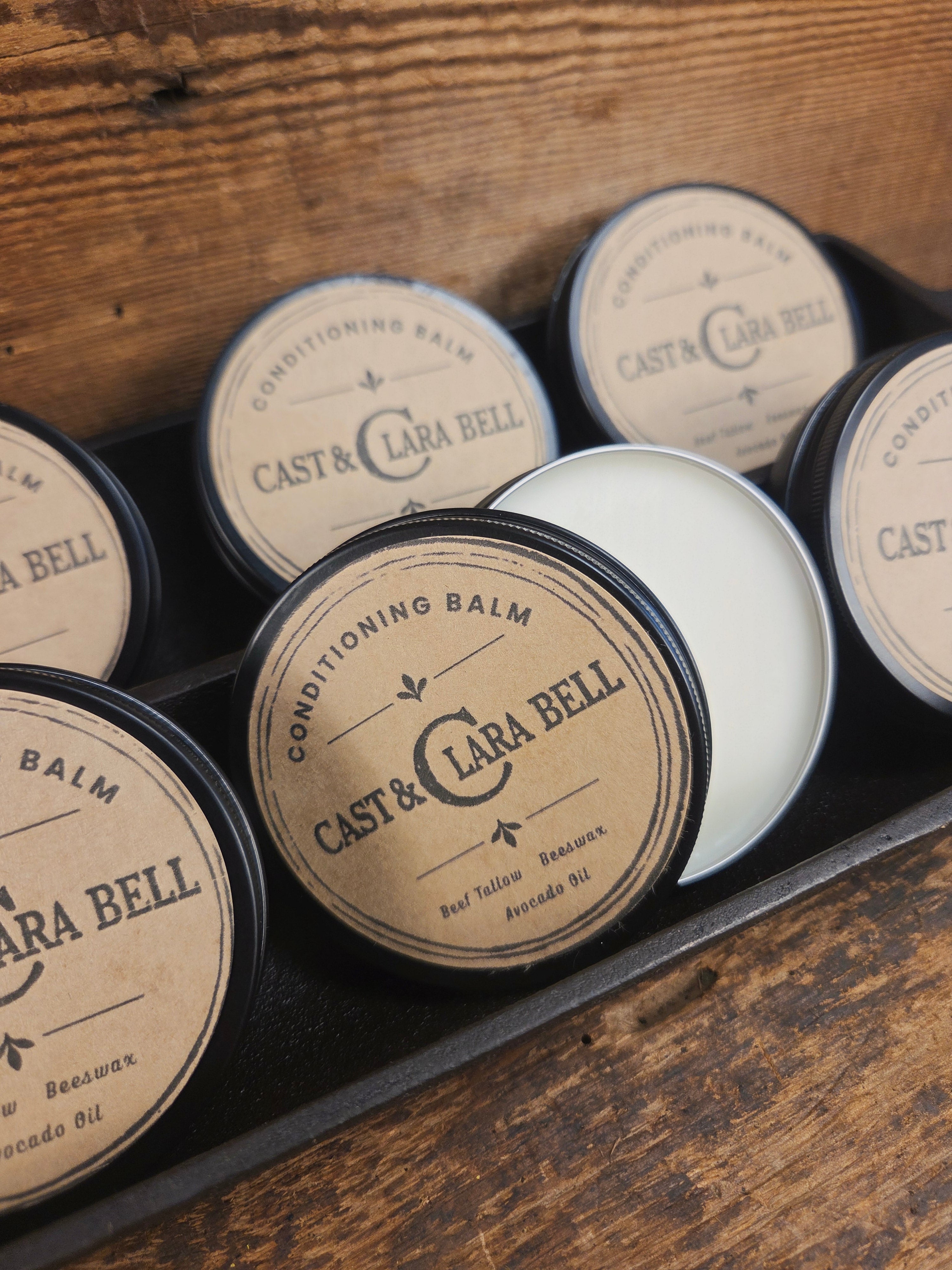 Weβre excited to introduce our Cast Iron Conditioning Balm, a custom blend of beef tallow, beeswax, and avocado oil designed to protect and enhance well seasoned cast iron.