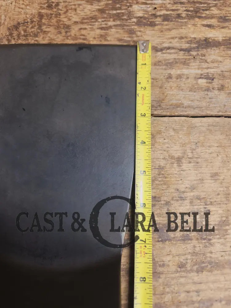 This lovely and very special #8 Spatula was crafted from a cracked Wagner Deep Chicken Fryer. It was part of a combo set with lid. The unique bullet style handle was indicative of the combo and deep chicken fryer styles.