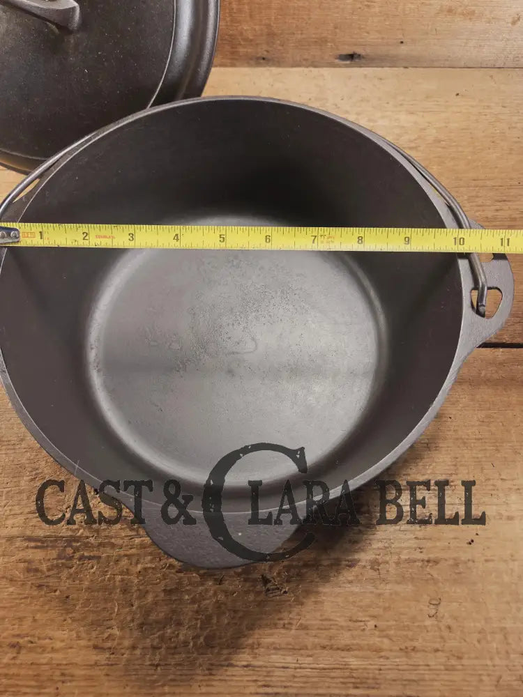There are a few variations of the classic 1940‘s era Griswold #8 Large Block, Tite-top Dutch Oven 1278, and this one has a hard to find EZ Clean lid! This gives a unique protection against rusting when steam is present. There may be a slight movement on a glass surface, as are many dutch ovens of the time. It will not affect roasting in the least as it sits mostly flat. Please use pictures for description and message us with any questions! We hope you enjoy this piece as much as we did restoring it.
