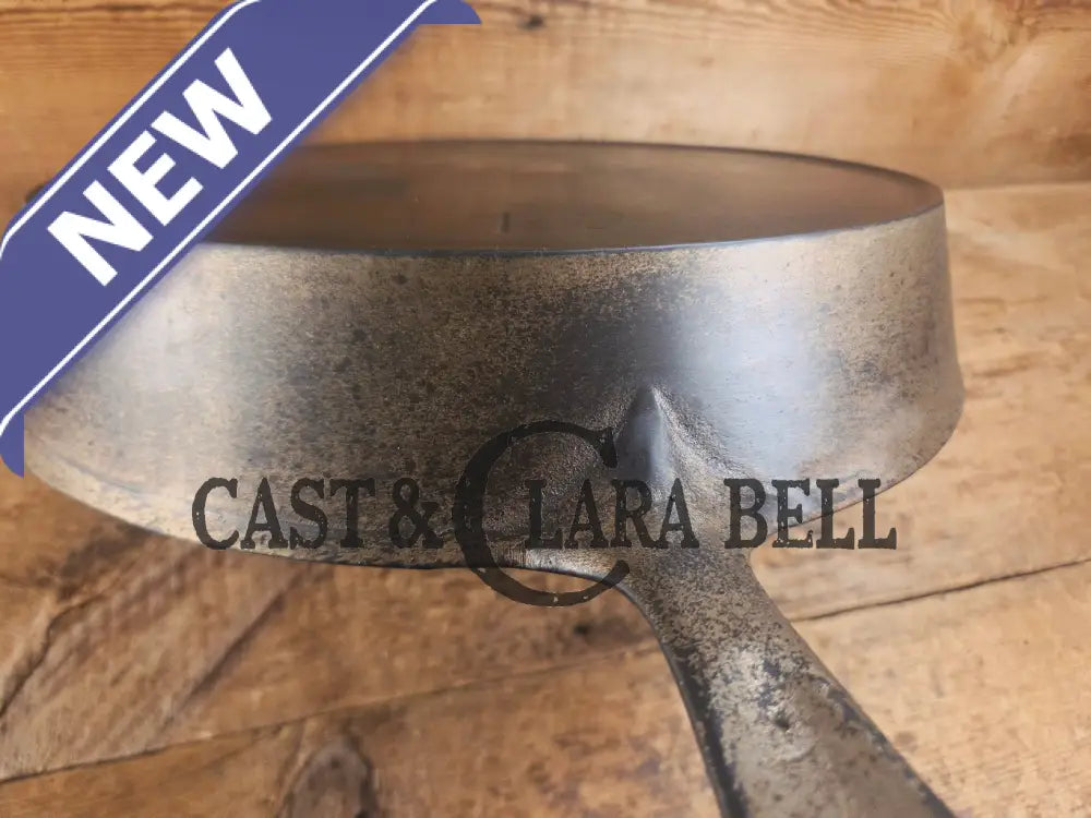 This Sidney BLOCK logo skillet, made by Wagner in the 1910‘s, came from a collection of a long time southern cast iron collector. During the early 1900‘s Wagner tinkered with its logo in a half dozen ways, and this SIDNEY logo is one of the harder to find pieces left from that era. It has been stripped fully down before being seasoned three times with our cast iron conditioning balm. It does not sit flat so best for gas and coil tops. Its a duo finish skillet with remnants of its nickel coating on the outside but the inside is black iron. Cool patina. Really pretty skillet.