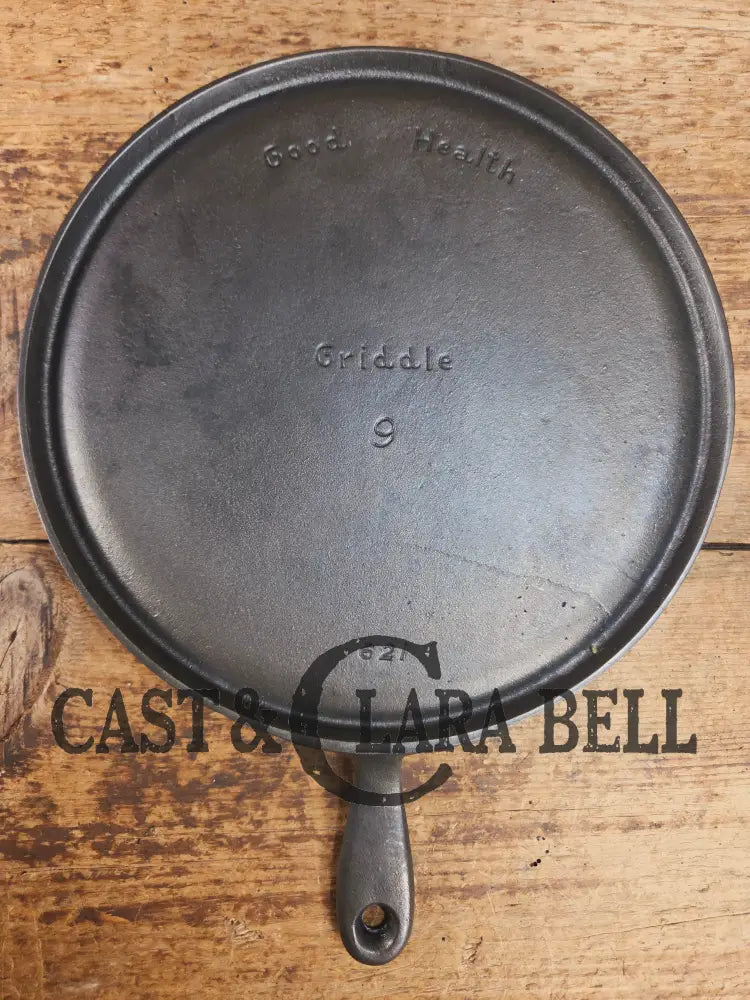 Hard to find! Griswold's Good Health #9 Cast Iron Round Griddle, 621. Fantastic for pizzas, pancakes or bacon!
