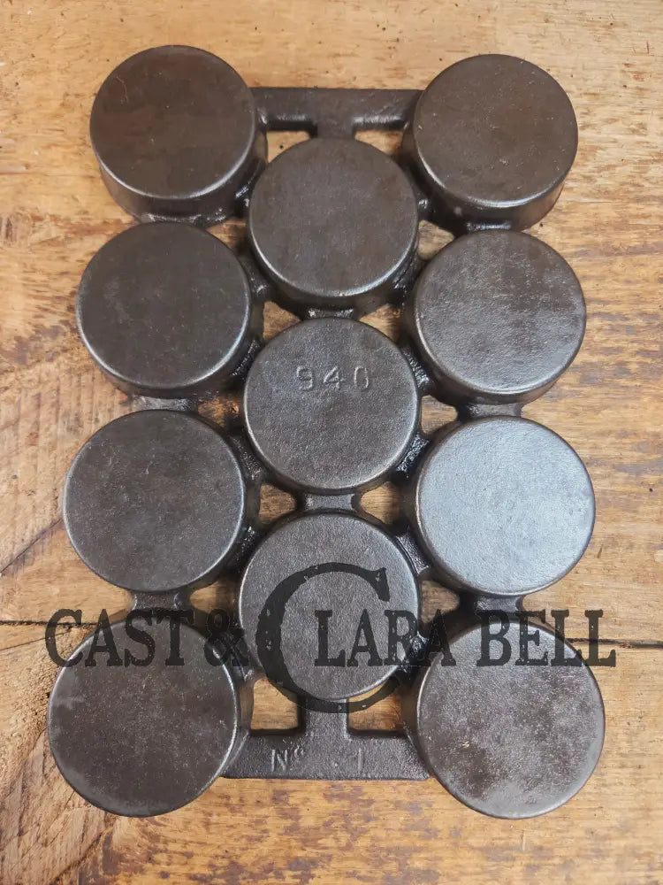 Sourdough English Muffins! HTF 1920's Griswold No. 1 Gem Pan, Variation 2, 11 cup, p/n 940. Rarity 6!