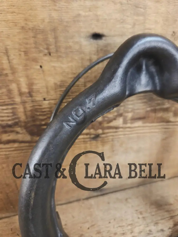 Our customers know that when we say that an item is unique and amazing, that we‘re spot on in the description. We LOVE this one and don‘t want to see it go! This waffle iron is easily a top ten all time item for us. It‘s the cutest waffle iron! It‘s a #7 so it‘s smaller than the 8 and 9, but makes PERFECT personal sized waffles. The low base, fully marked is a rare find as well, so its perfect for any cook top surface. There are small amounts of casting flaws on the outer ring of the base, but it‘s charm is overwhelming. Other than that there is no damage or issues with the iron. It was been restored with organic beef tallow