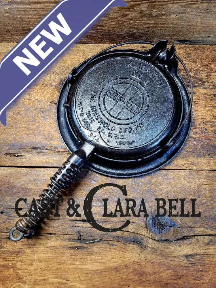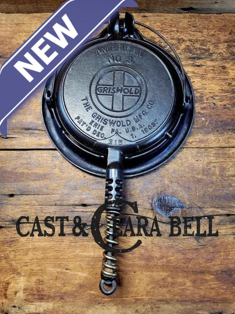 The Classic! 1920's Griswold No. 8 Waffle Iron (314/315) with low (913) bailed base. Makes crispy waffles!