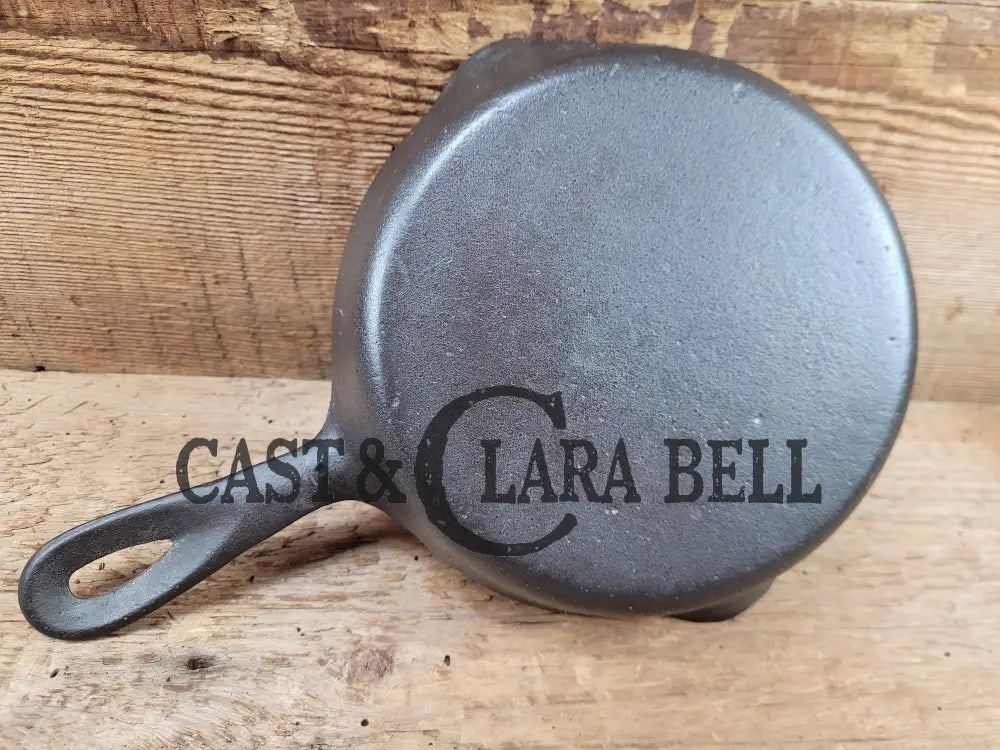 This skillet looks, feels and appears to have all of the trademarks of a Wagner egg skillet but the maker is unknown because the markings are nonexistent. However for cooks, its just a fantastic egg skillet to own. Similar in handle and design, it sits flat and will cook up one or two eggs in a flash.
