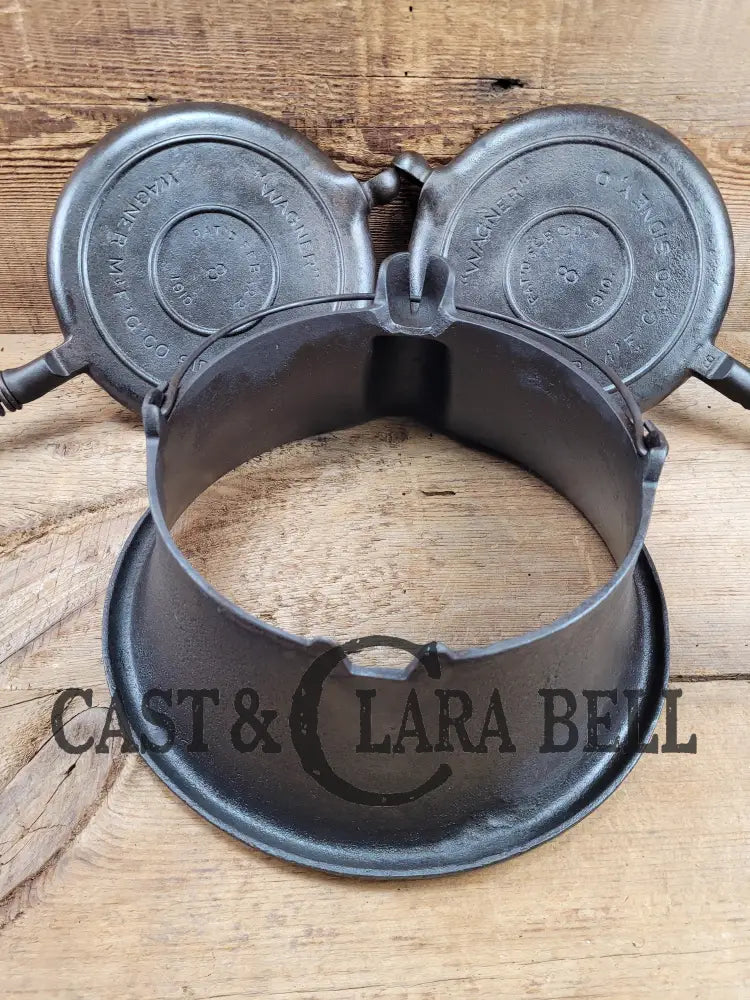 This waffle iron was brought to us from Illinois from a family sale. The style paddle is from the "Wagner" arc logo era, where they had not yet converted over to the stylized logo. These were some of the finest pieces they made in the 1910βs and 20βs. The tall bases are perfect for any cook surface especially gas! For being over 100 years old, its in great shape and is a beautiful character piece to have in your gourmet kitchen. Itβs a hard to find piece that youβll love having at home! Tall bases are a blessing to have for all cook surfaces including out on the campfire because they allow for quick turning on any surface.